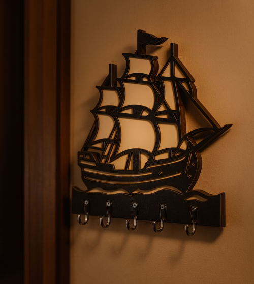 Gemi Figürlü Duvar Anahtarlık Askısı