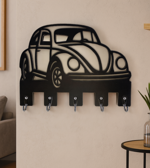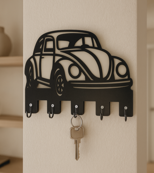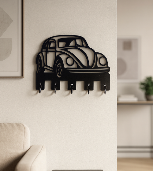 Vosvos figürlü duvar anahtarlık askısı, modern, İskandinav veya minimal dekorasyon stilleriyle mükemmel uyum sağlar. Geometrik hatlar sayesinde modası geçmeyen bir tasarıma sahip olup, yıllar boyunca dekorasyonunuzu tamamlayacak bir parça olarak kalır. Montajı oldukça basittir; sağlam vidalar ve kancalar ile duvara güvenli bir şekilde sabitlenir. Hafif yapısı sayesinde farklı odalara taşınması kolaydır.