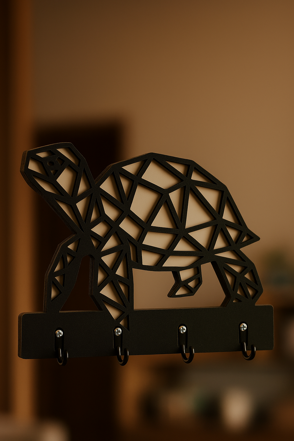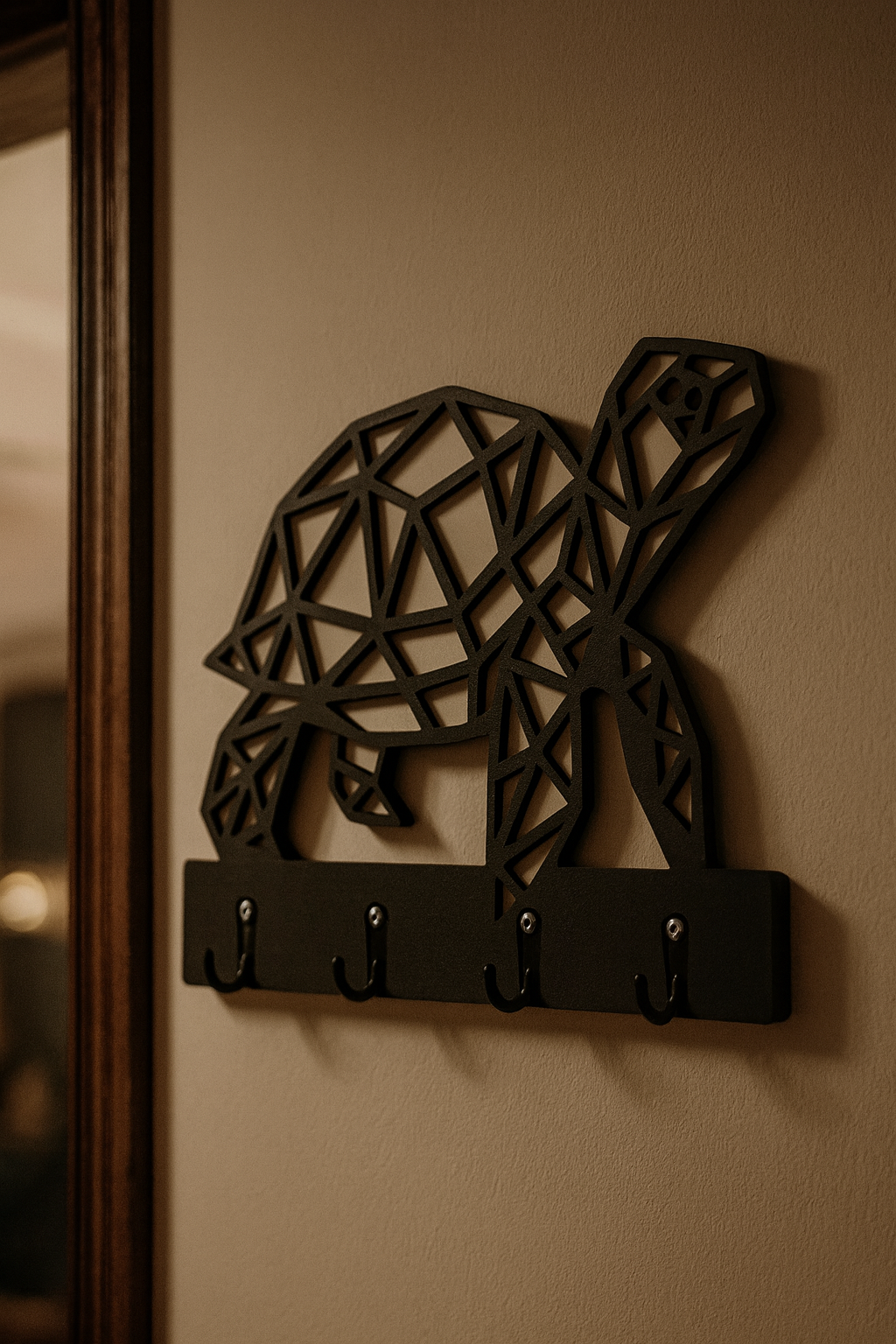 The Turtle Figured Wall Key Holder Hanger is a special product that combines the serenity of nature and modern decorative design. This model, which you can use in many areas from the entrance of your home to the living room, not only organizes your keys but also adds elegance to your living space. The turtle motif symbolizes patience, longevity, and peace, while in this product, it has become a modern work of art with geometric lines.