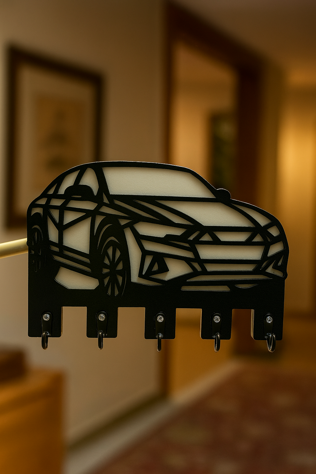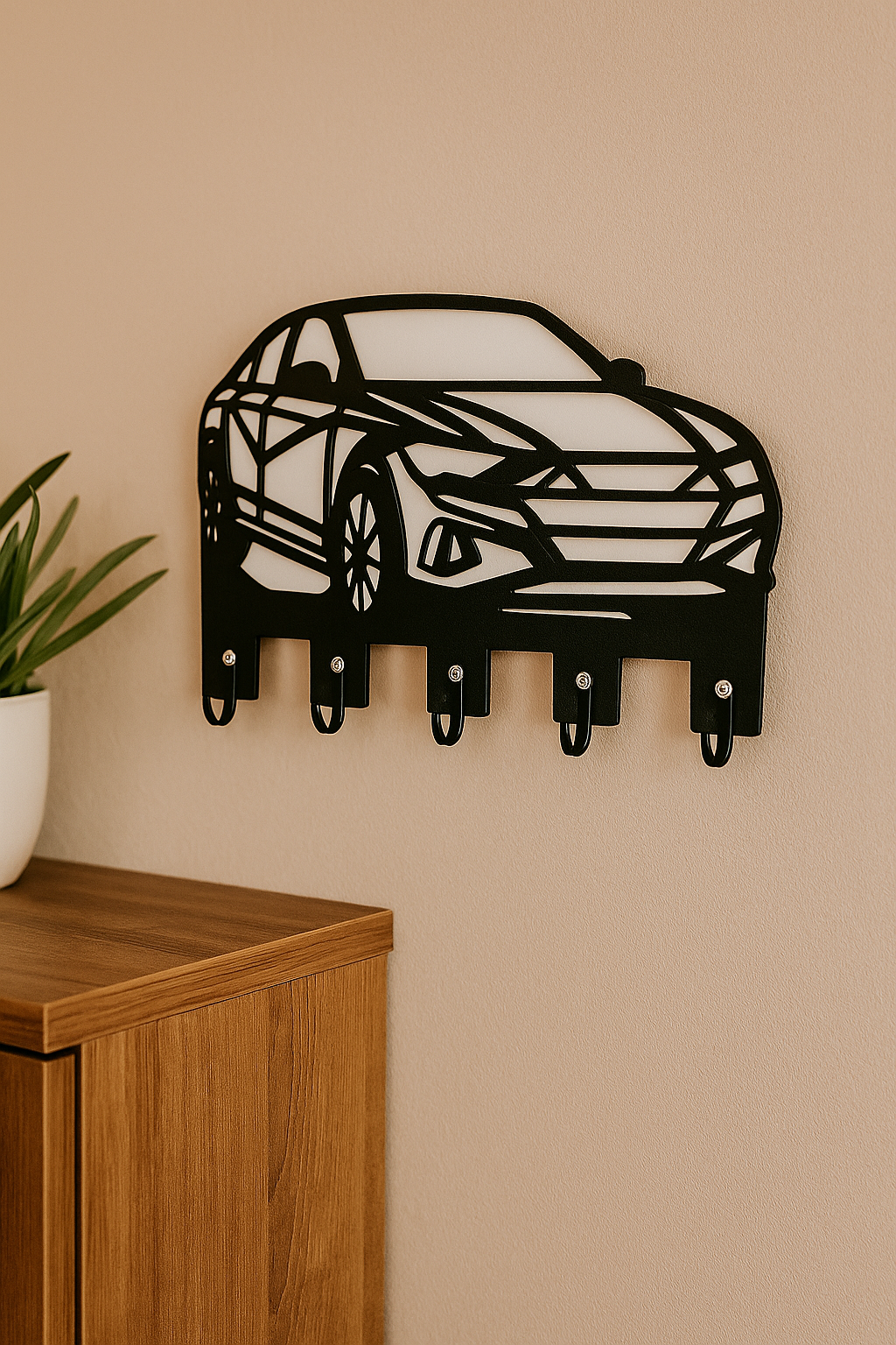 Evderyası’nın özenle tasarladığı Dekoratif Araba Figürlü Anahtarlık Askısı, fonksiyonellik ile estetiği bir araya getiriyor.